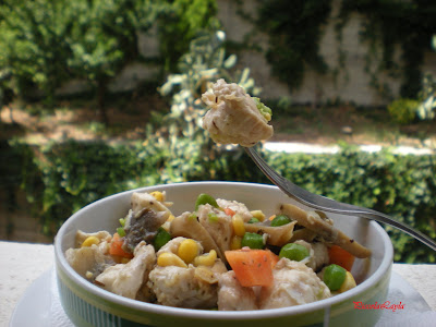 Questa è la mia versione dell insalata di pollo con la collaborazione del mangione di casa in vacanza cioè mio fratello… saporitissima e semplicissima da fare…