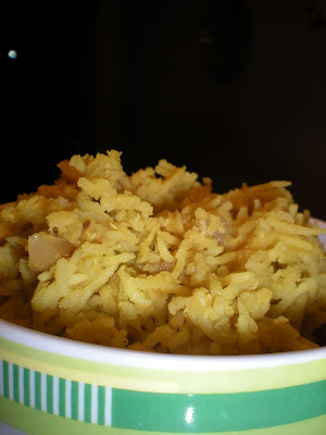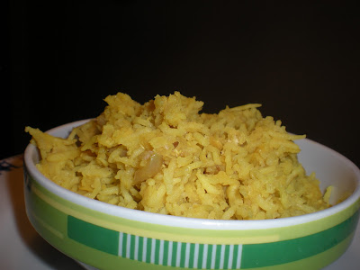 Scaldare il ghee in una casseruola dotata di un buon coperchio e friggervi le spezie a semi, aggiungere la il peperoncino, la cipolla, l’aglio e lo zenzero lasciare che questi prendano colore, unire il riso e le lenticchie girando delicatamente.