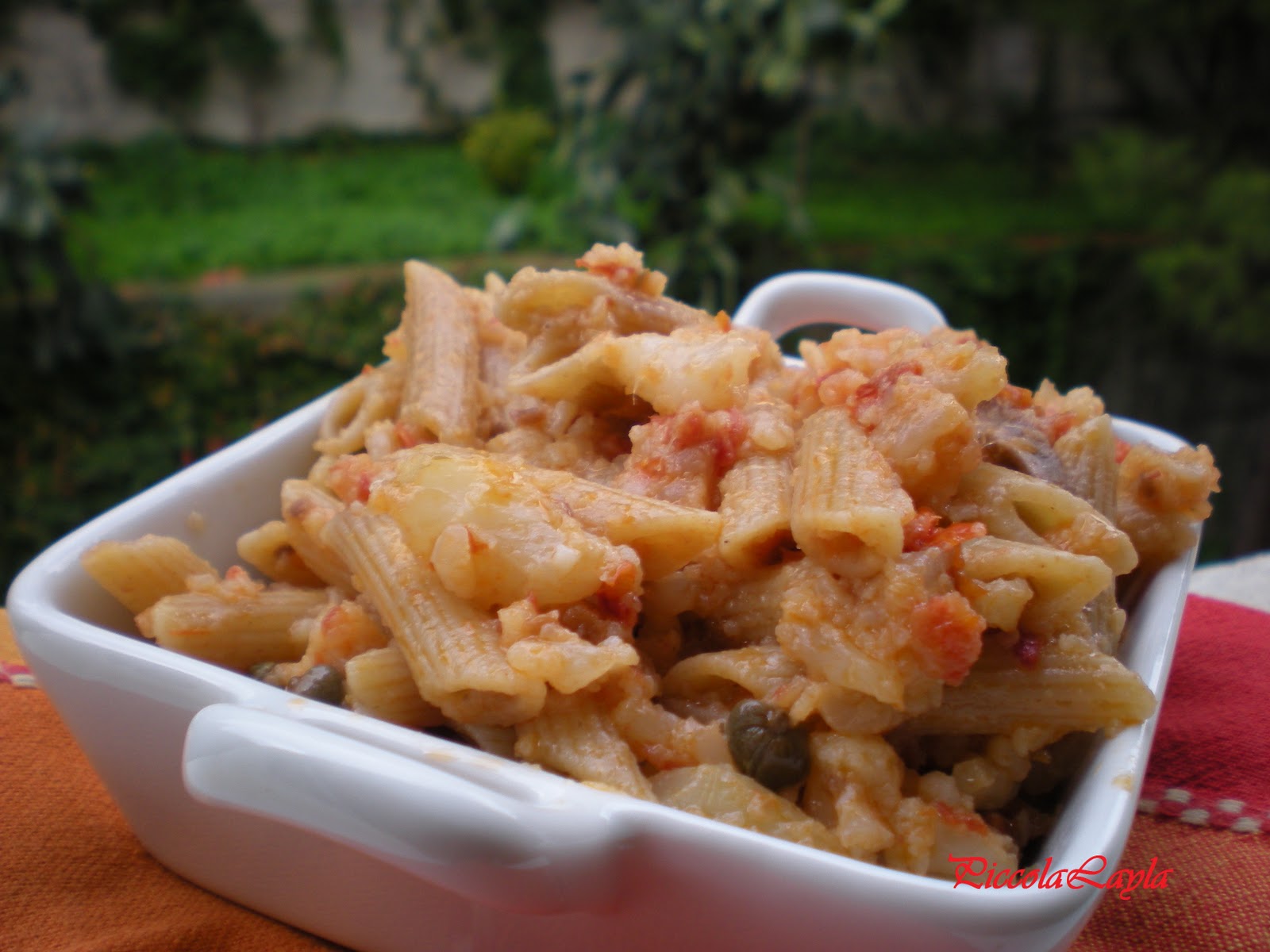 Cuocere la pasta nell’acqua di cottura del cavolfiore, scolarla al dente e saltarla a fuoco vivo con il condimento precedentemente preparato. Servire calda.