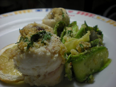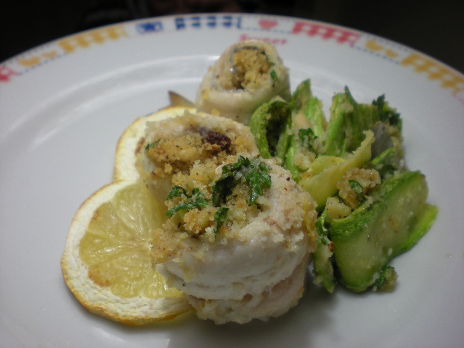 Avvolgete su ogni fettina di pesce e di zucchina un pò di composto precedentemete preparato.
