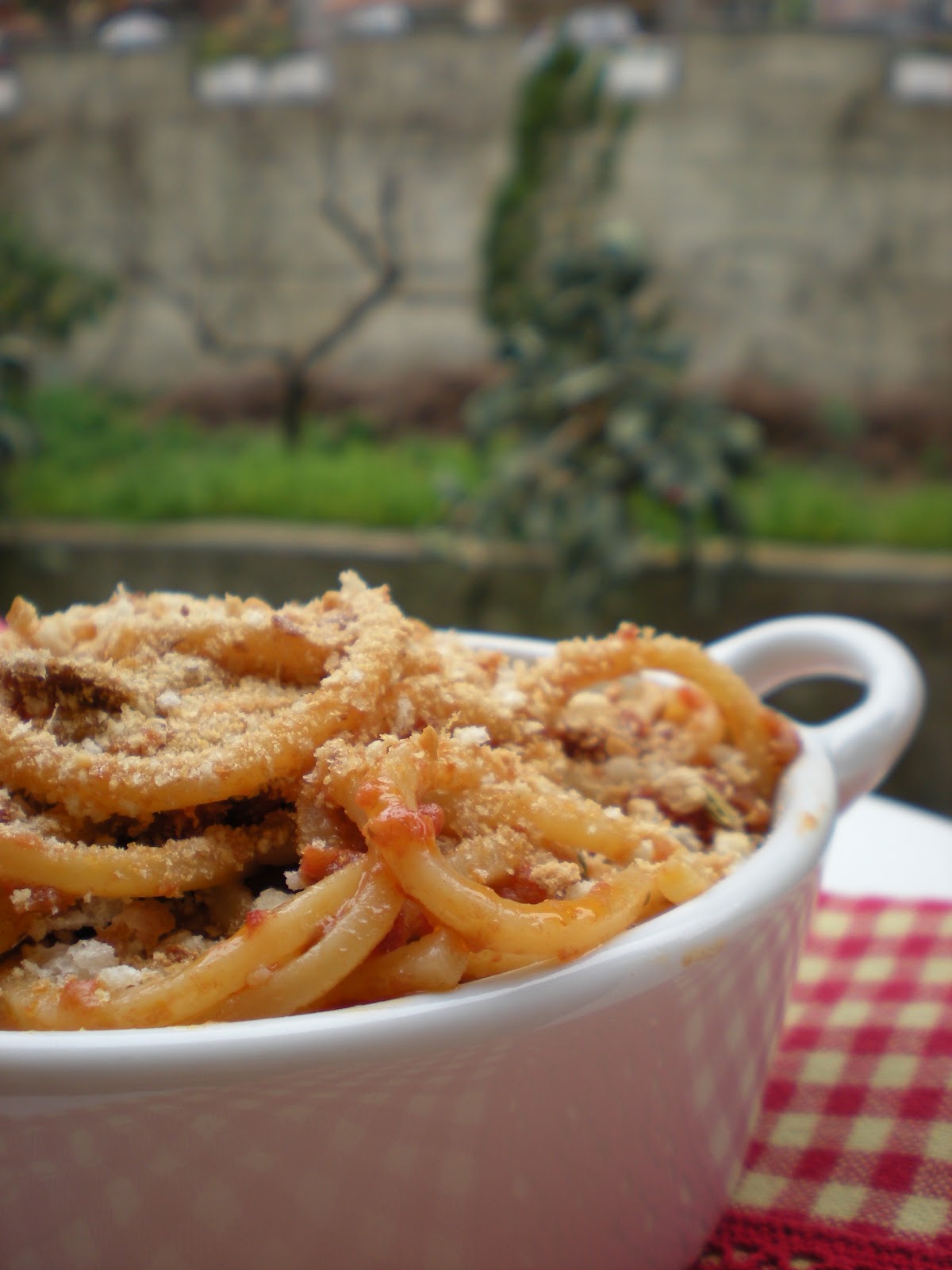 Cuocere la pasta in abbondante acqua poco salata scolarla al dente tenendo da parte una tazza di acqua ci cottura. Mantecare il tutto e servire con un una spolverata di pan grattato fine tostato.