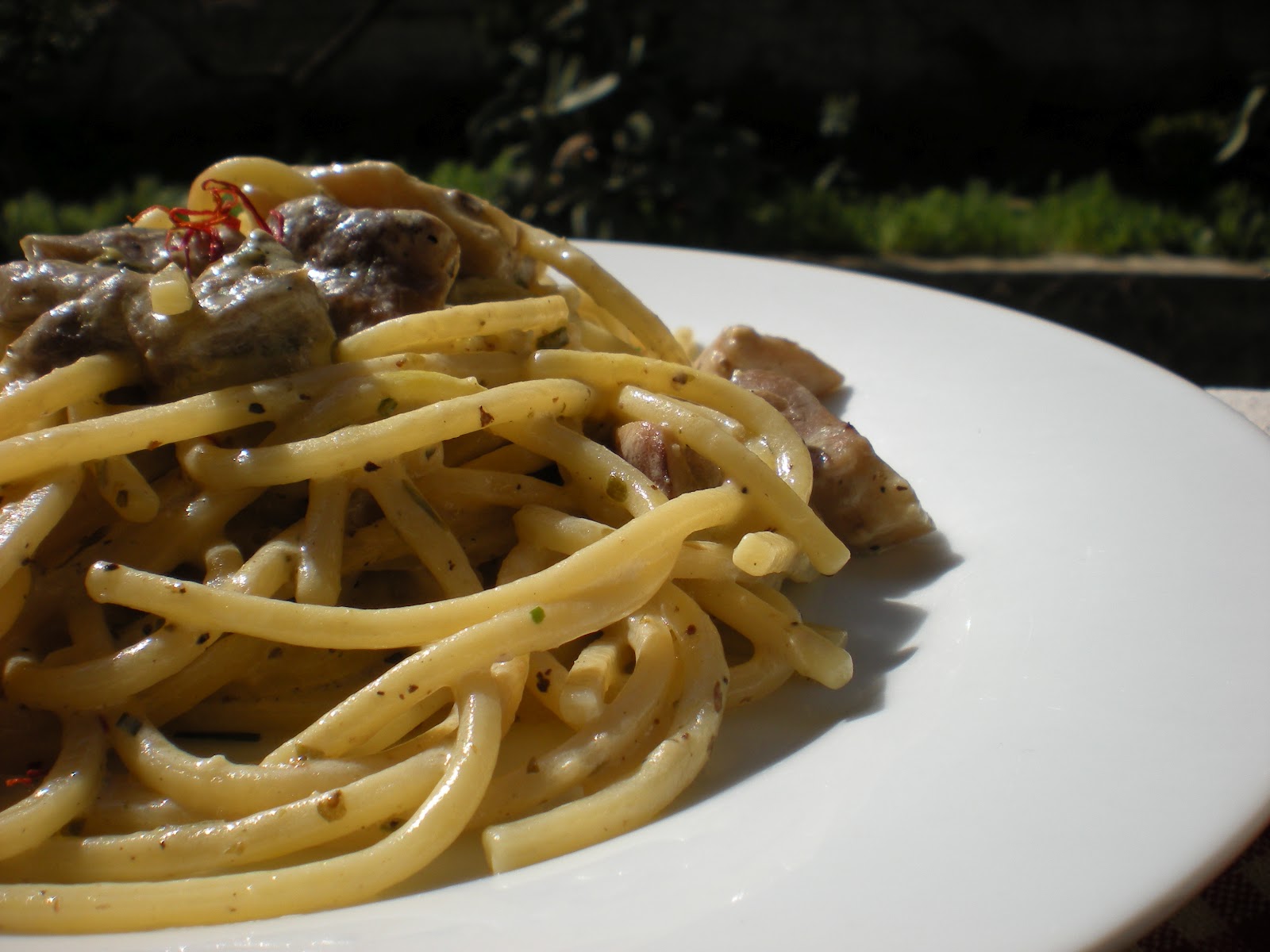 Vi avevo avvertite che avrei postato una serie infinita di ricette con questo formato di pasta: oggi Spaghetti alla Chitarra con Funghi e Pistilli di Zafferano!!!!